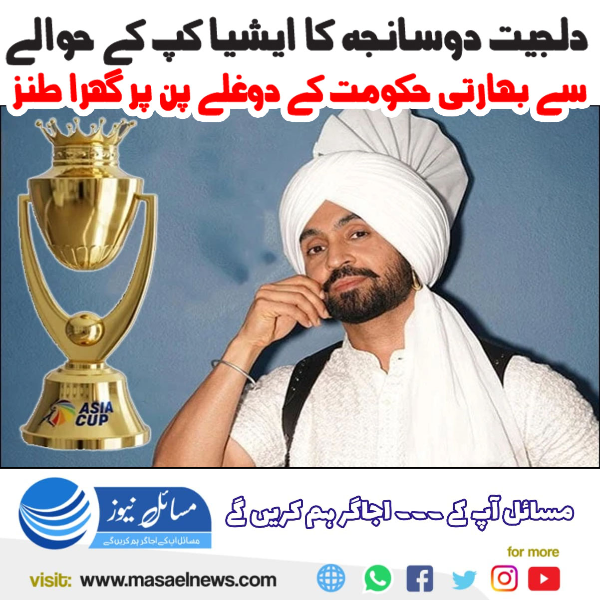 دلجیت دوسانجھ کا ایشیا کپ کے حوالے سے بھارتی حکومت کے دوغلے پن پر گہرا طنز