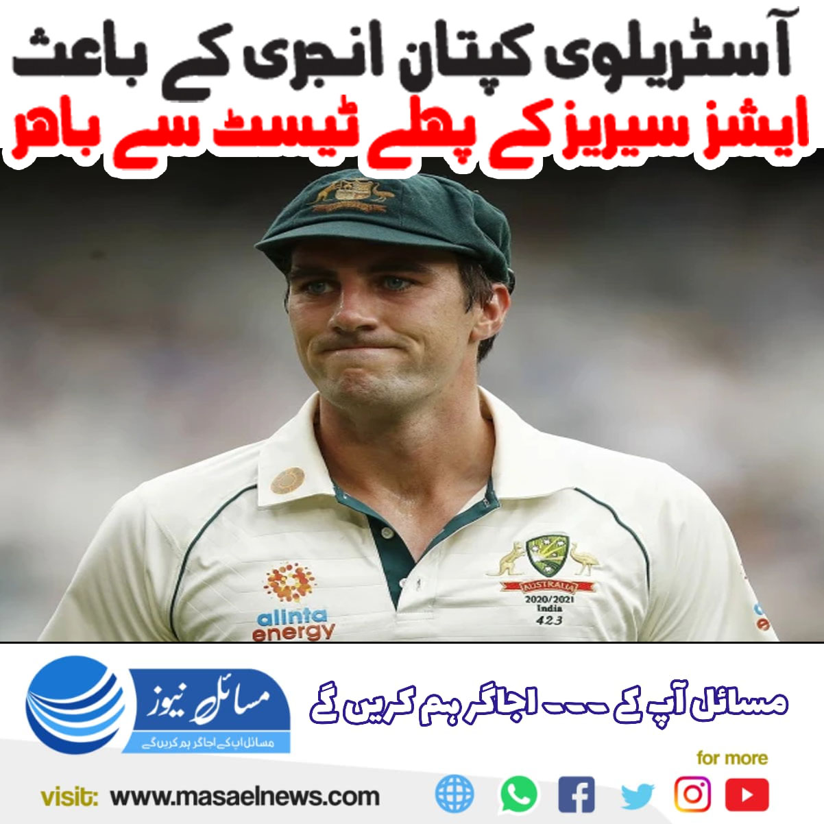 آسٹریلوی کپتان انجری کے باعث ایشز سیریز کے پہلے ٹیسٹ سے باہر