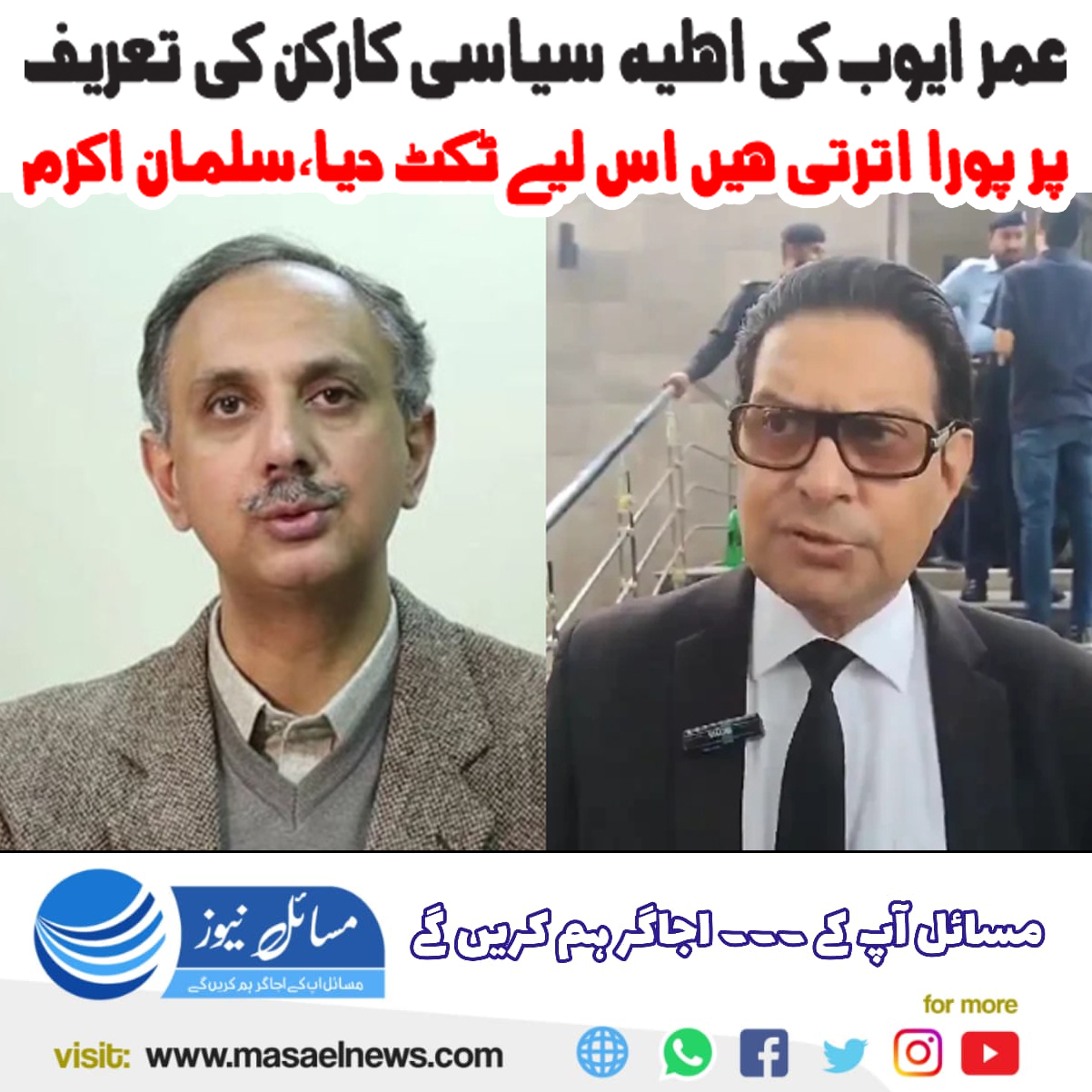عمر ایوب کی اہلیہ سیاسی کارکن کی تعریف پر پورا اترتی ہیں اس لیے ٹکٹ دیا، سلمان اکرم