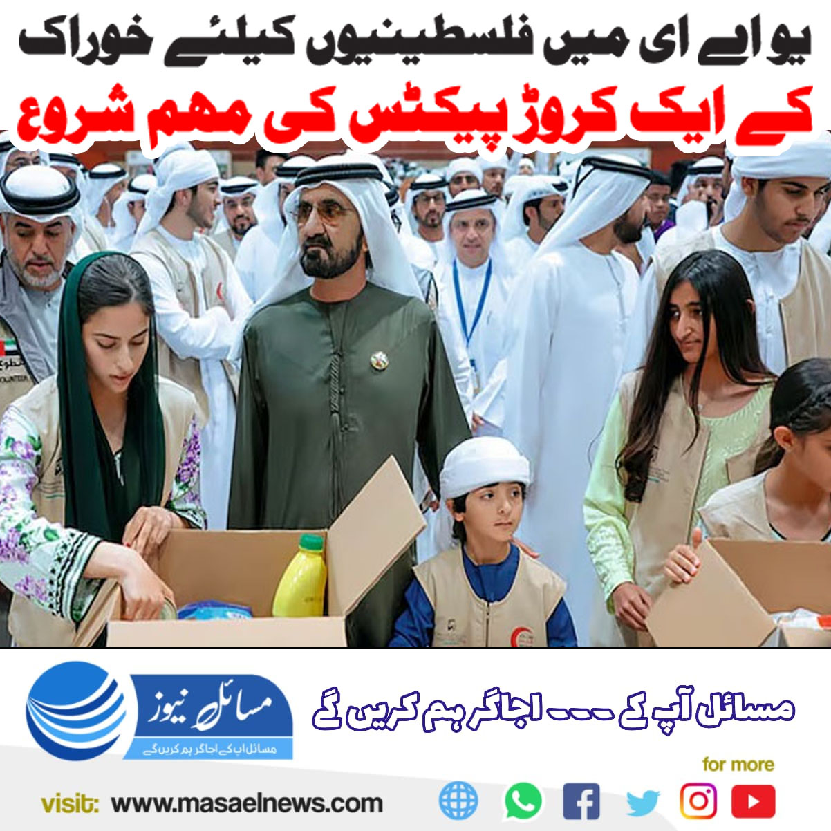 دبئی(مسائل نیوز) متحدہ عرب امارات نے فلسطینیوں کیلئے خوراک کے ایک کروڑ پیکٹس کی مہم شروع کردی۔