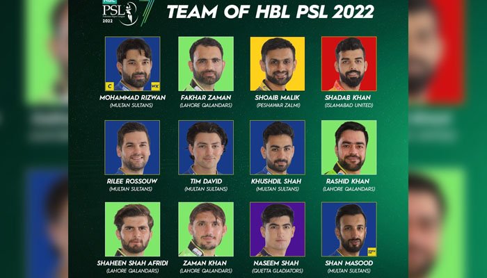 جنہیں ٹیم آف ایچ بی ایل پی ایس ایل 7 کا حصہ بنایا گیا ہے۔ ان کے علاوہ رائیلی روسو، ٹم ڈیوڈ اور خوشدل شاہ کو بھی ٹیم آف ایچ بی ایل پی ایس ایل 7 میں شامل کیا گیا ہے۔ٹورنامنٹ کی چیمپئن لاہور قلندرز کے بھی چار کھلاڑیوں کو ٹیم آف ٹورنامنٹ کا حصہ بنایا گیا ہے۔