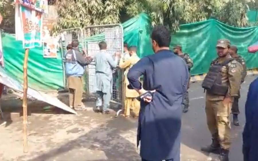 ضلعی انتظامیہ کا زمان پارک میں آپریشن ، بینرز اتارنے والی ٹیم اور پی ٹی آئی کارکنان میں لڑائی ہو گئی