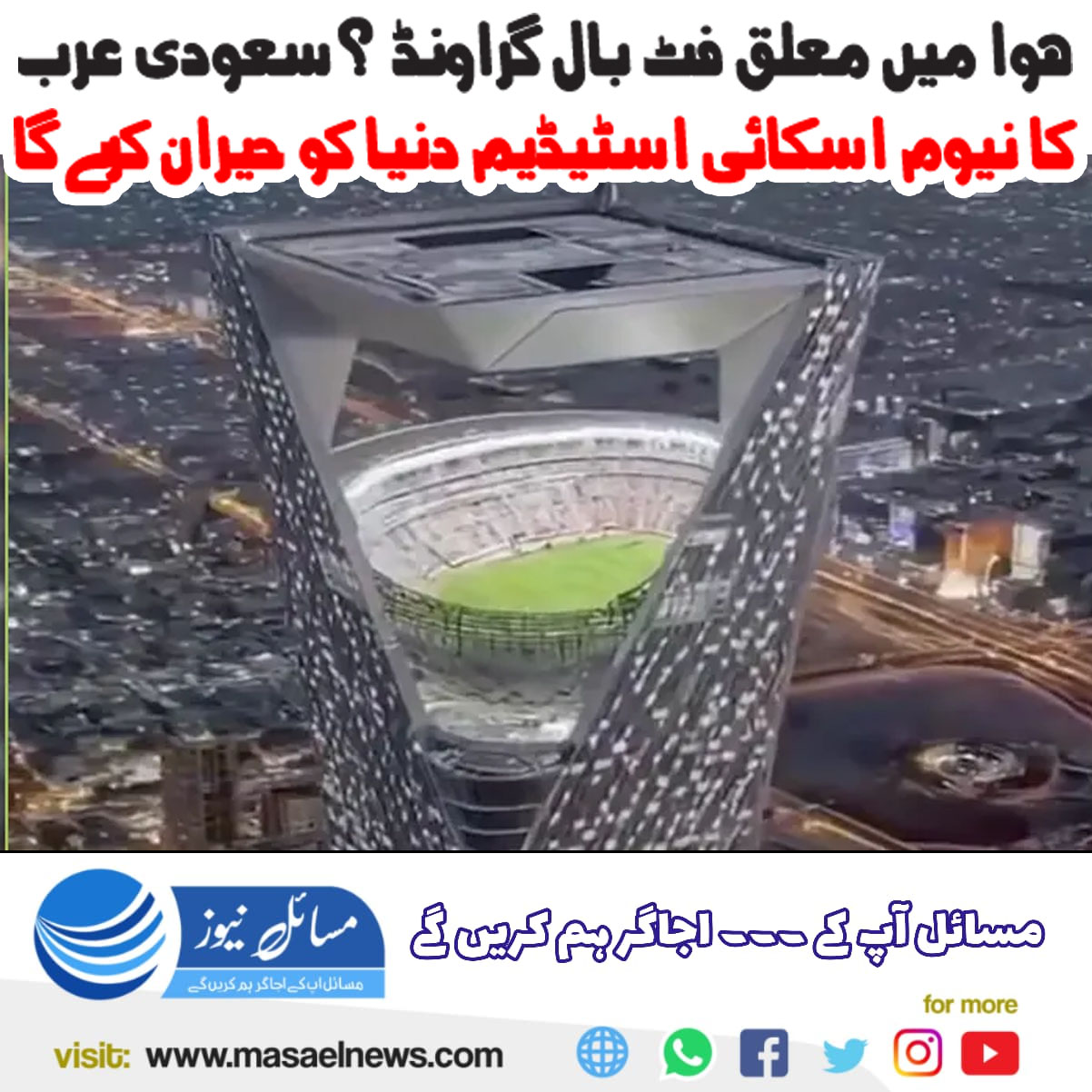سعودی عرب (مسائل نیوز)سعودی عرب دنیا کا پہلا اسکائی اسٹیدیم بنانے جا رہا ہے جس کا نام نیوم اسٹیدیم ہے جوکہ زمین سے تقریباً 350 میٹر، 1,150 فٹ اوپر ہوا میں معلق ہوگا اور اس میں 46 ہزار افراد کے بیٹھنے کی گنجائش ہوگی جبکہ اسے شمسی اور ہوا کی توانائی سے چلایا جائے گا۔