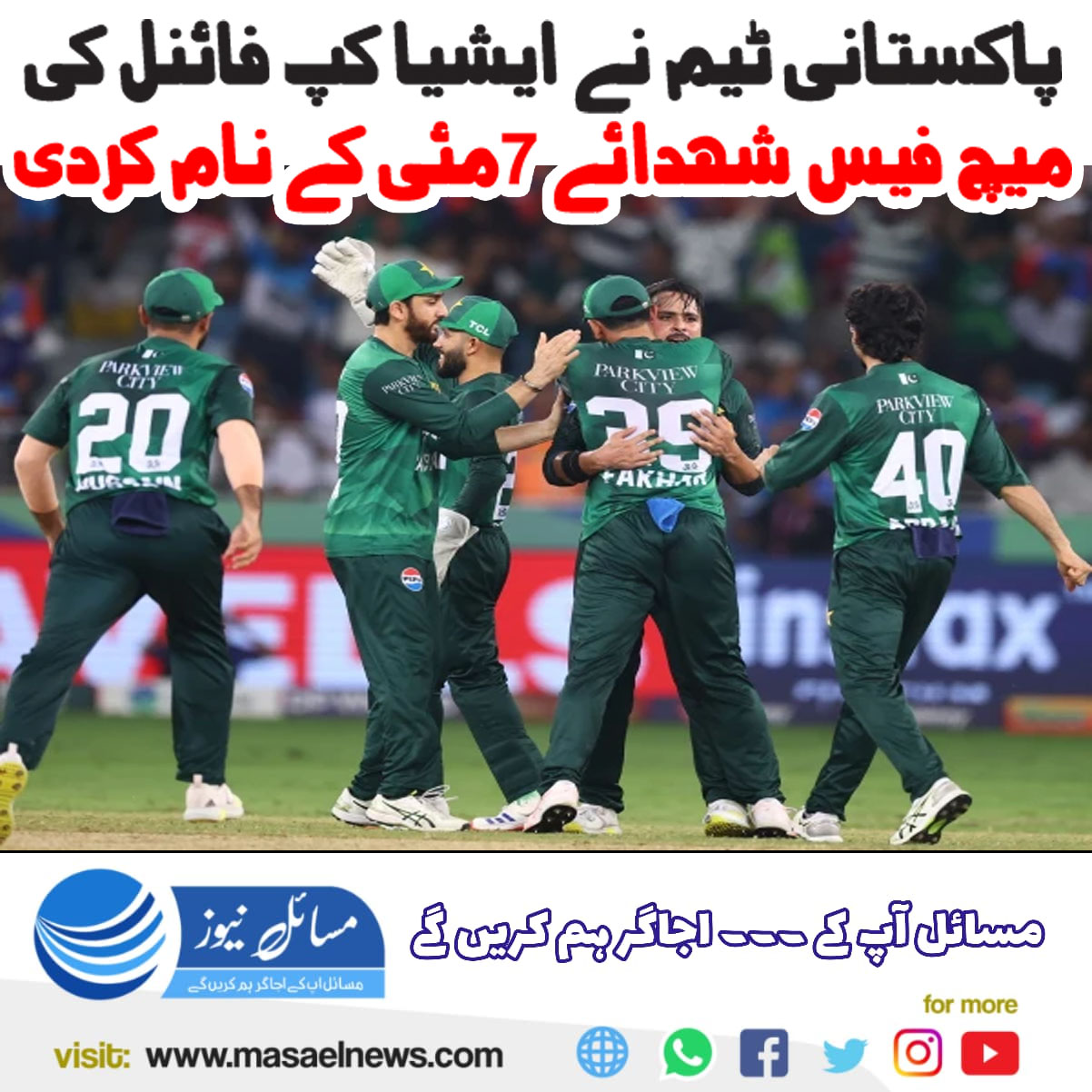 پاکستانی ٹیم نے ایشیا کپ فائنل کی میچ فیس شہدائے 7 مئی کے نام کردی