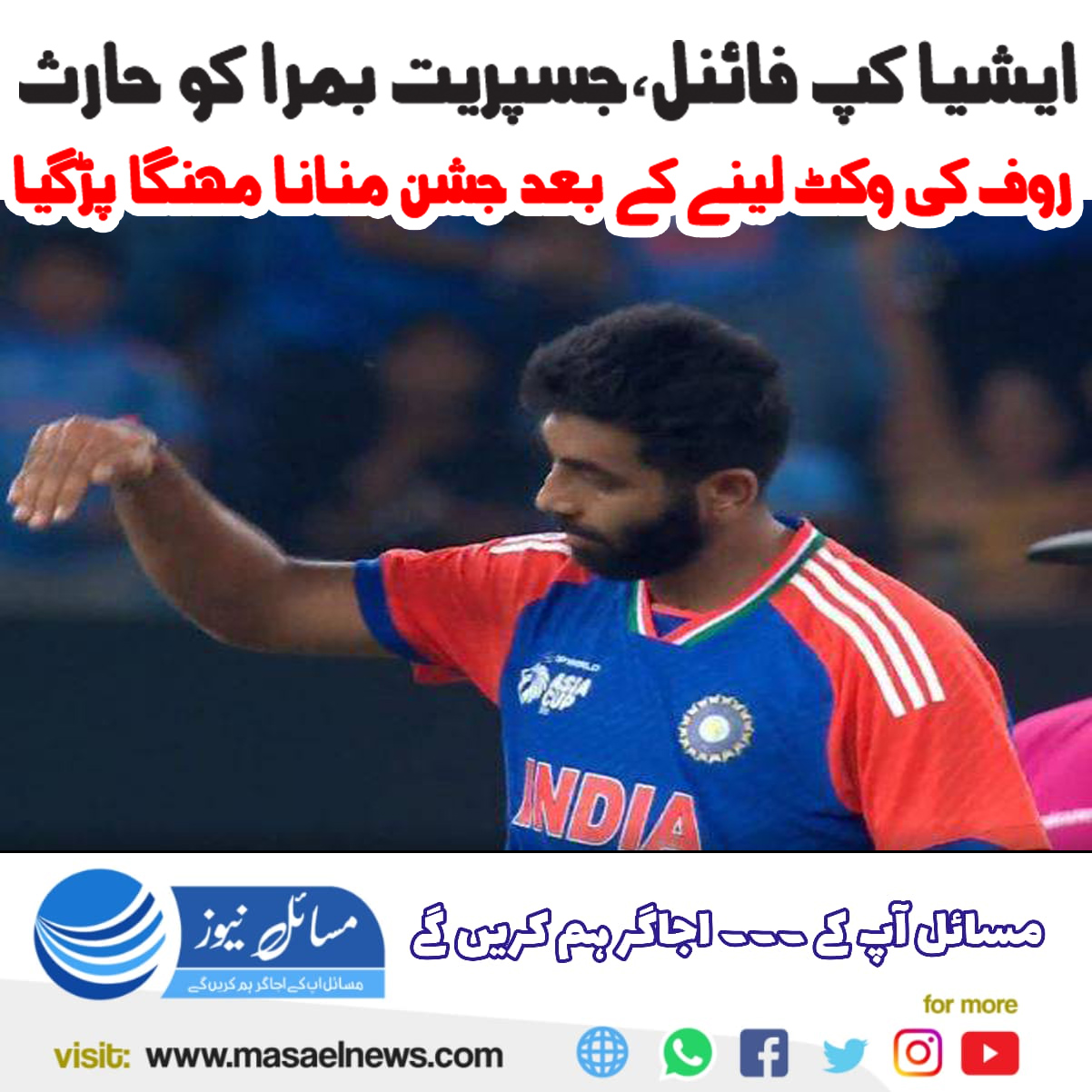 ایشیاءکپ فائنل: جسپریت بمرا کوحارث رؤف کی وکٹ لینے کے بعد جشن منانا مہنگا پڑ گیا