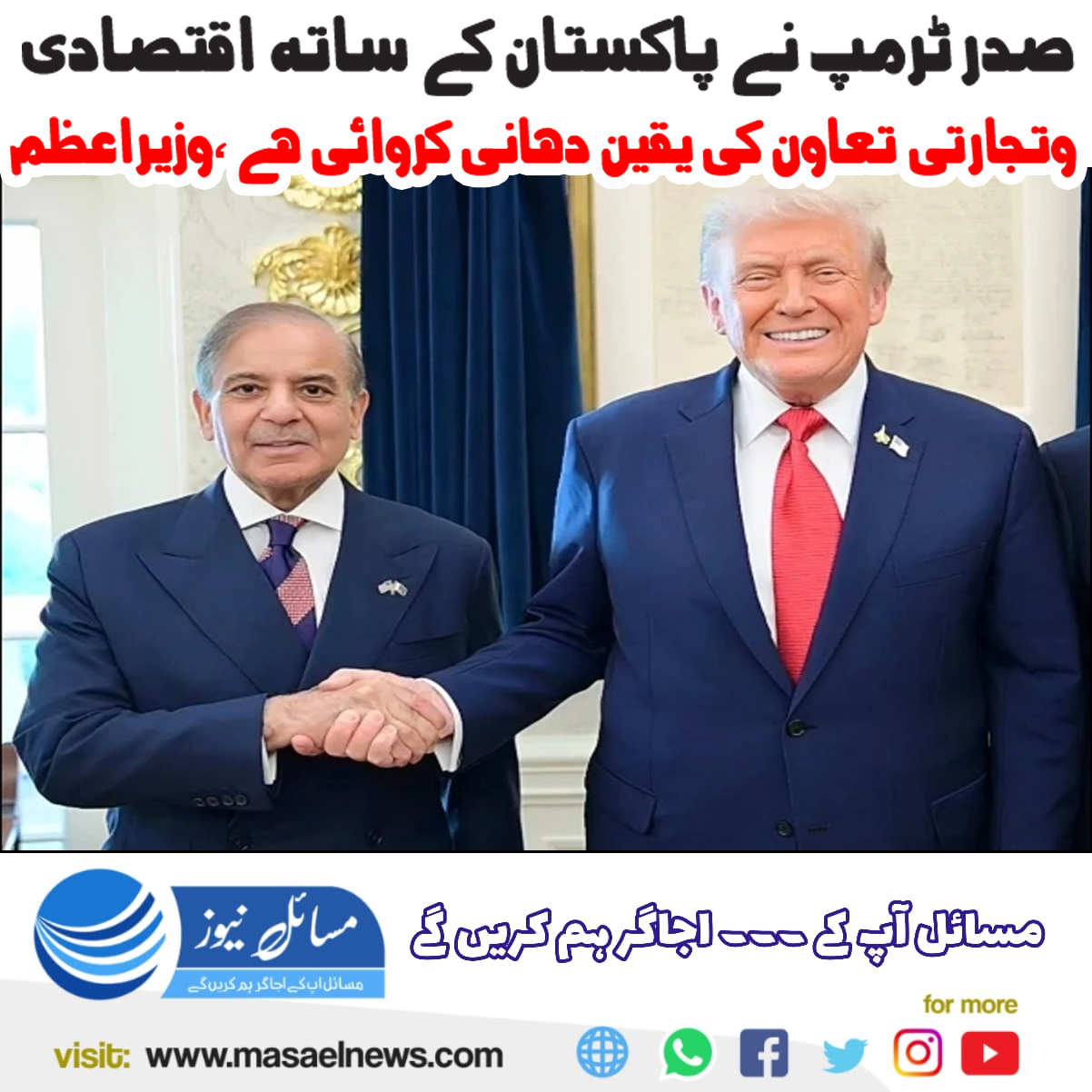 صدر ٹرمپ نے پاکستان کے ساتھ اقتصادی و تجارتی تعاون کی یقین دہانی کروائی ہے، وزیراعظم