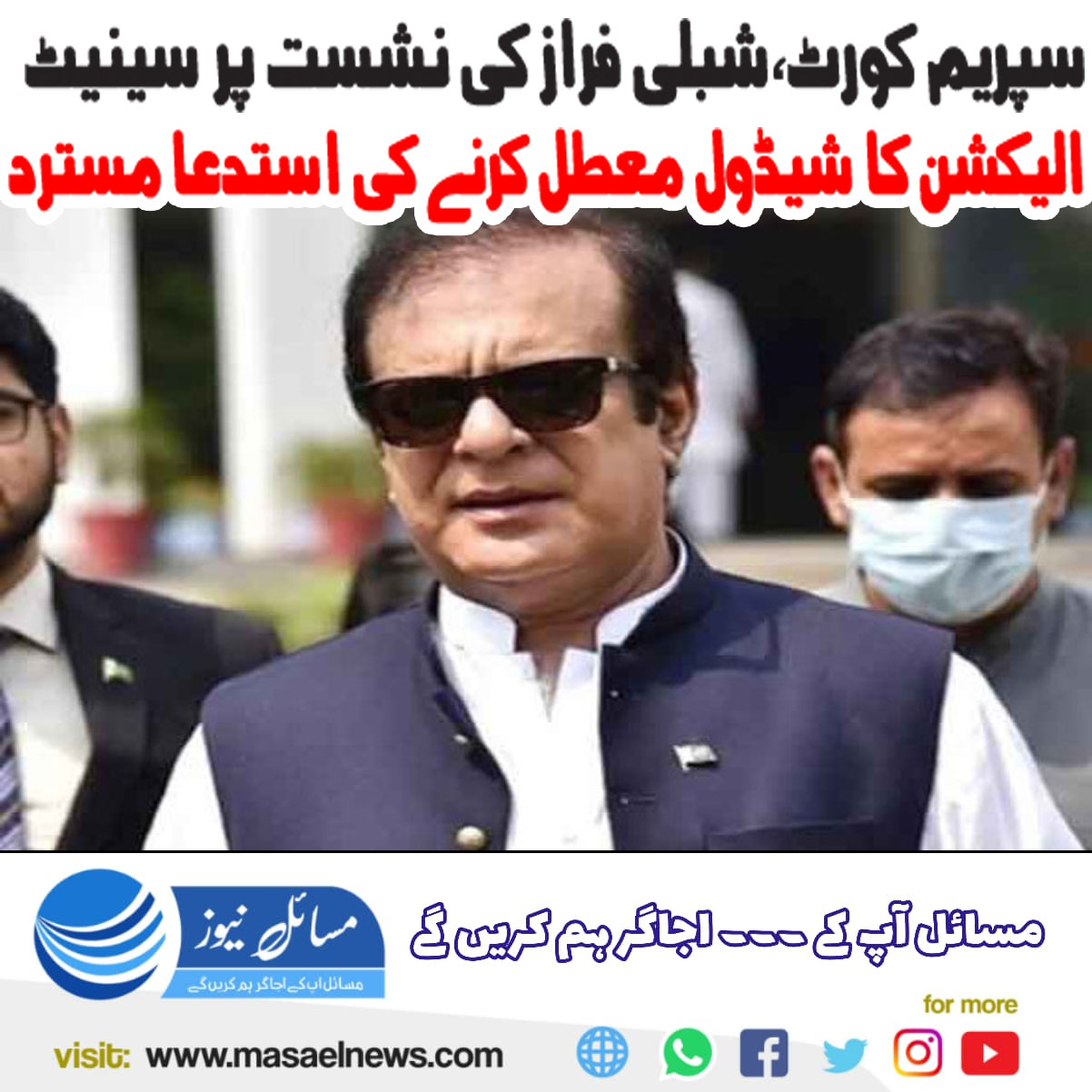 اسلام آباد(مسائل نیوز)سپریم کورٹ کے آئینی بینچ نے پی ٹی آئی رہنما شبلی فراز کی نشست پر سینیٹ الیکشن کا شیڈول معطل کرنے کی استدعا مسترد کر دی۔