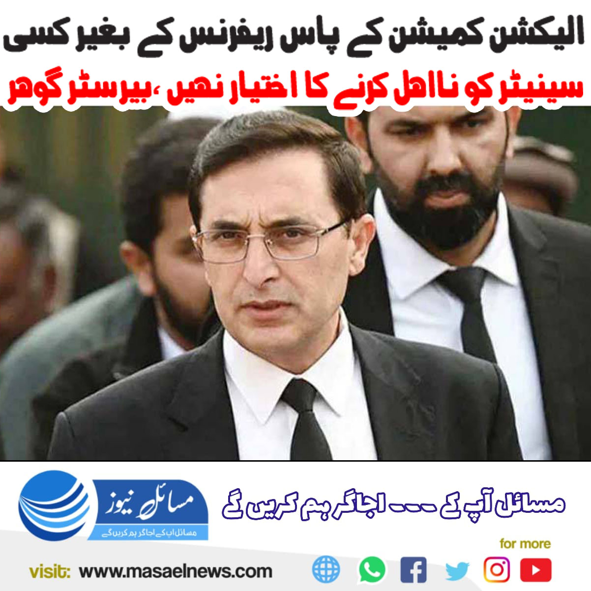 الیکشن کمیشن کے پاس ریفرنس کے بغیر کسی سینیٹر کو نا اہل کرنے کا اختیار نہیں: بیرسٹر گوہر