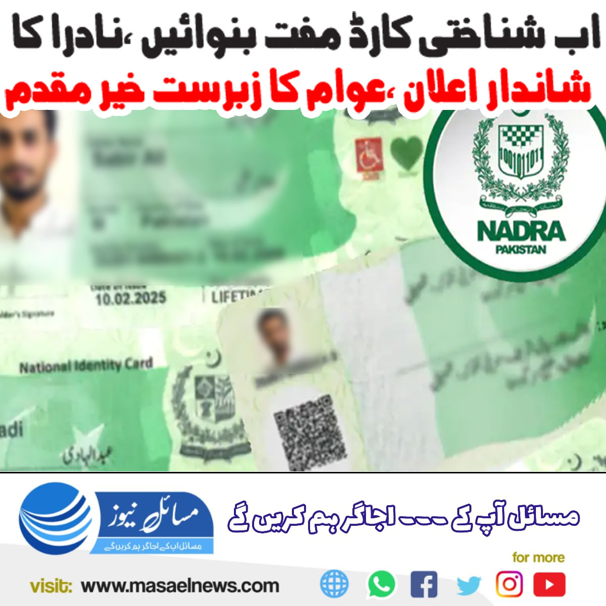 اب شناختی کارڈ مفت بنوائیں، نادرا کا شاندار اعلان، عوام کا زبردست خیرمقدم