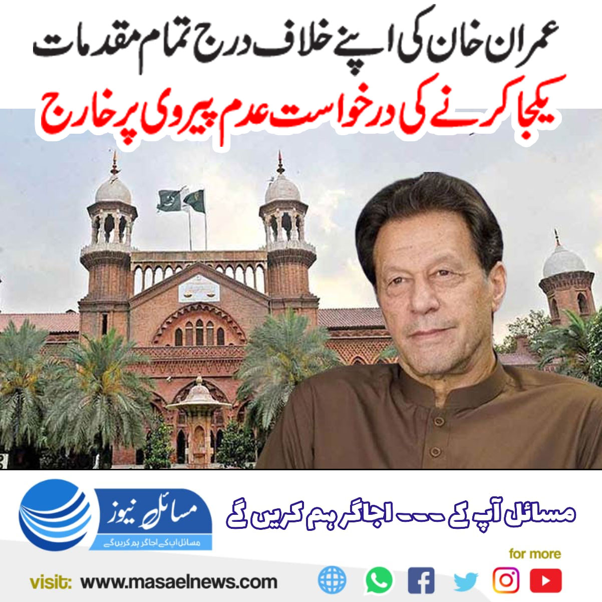 عمران خان کی اپنے خلاف درج تمام مقدمات یکجا کرنے کی درخواست عدم پیروی پر خارج