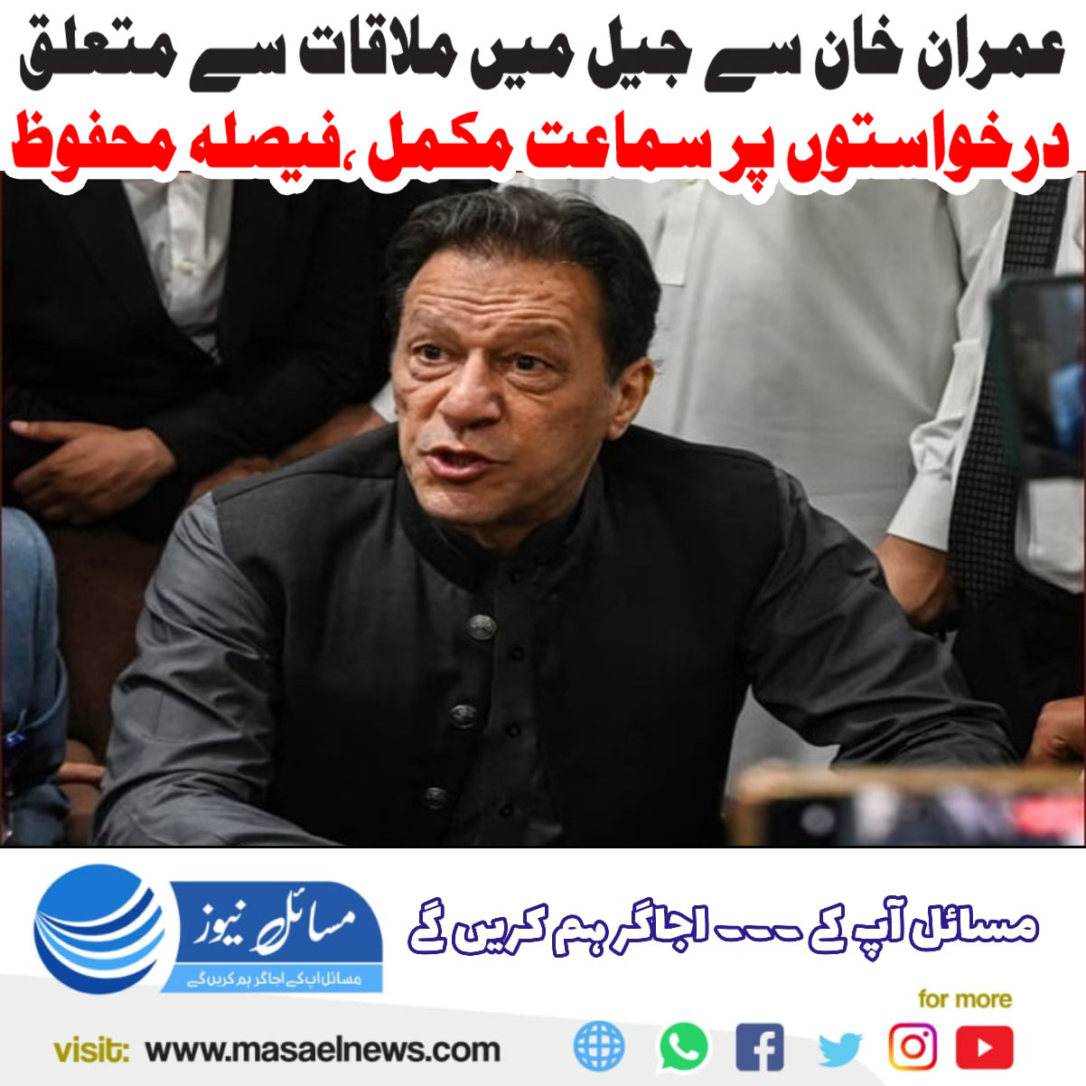 عمران خان سے جیل میں ملاقات سے متعلق درخواستوں پر سماعت مکمل،فیصلہ محفوظ