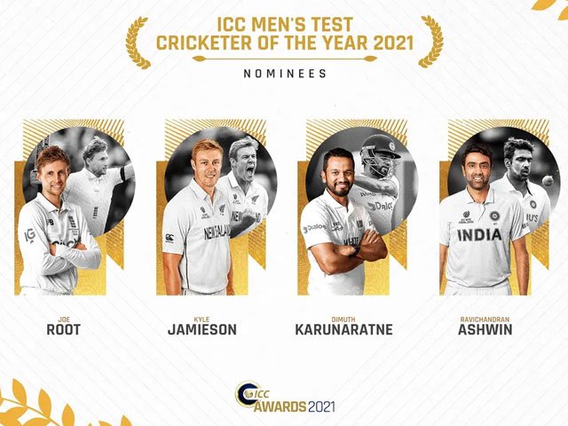 رواں سال پاکستان کے کسی بھی کھلاڑی کو ٹیسٹ پلیئر اف دی ایئر ایوارڈ کے لیے نامز نہیں کیا گیا۔ائی سی سی کے مطابق جوئے روٹ نے ایک سال میں پندرہ میچز کھیلے اور 6 سنچریوں کی مدد سے 1 ہزار 708 رنز اسکور کیے۔سری لنکن بلے باز کرونارتنے نے ایک سال کے دوران 7 ٹیسٹ میچز کھیلے اور چار سنچریوں کی بدولت 69.38 کی اوسط سے 902 رنز اسکور کیے۔کیوی گیند باز کیل جیمی سن نے 2021 کے دوران پانچ ٹیسٹ میچز کھیلے ،