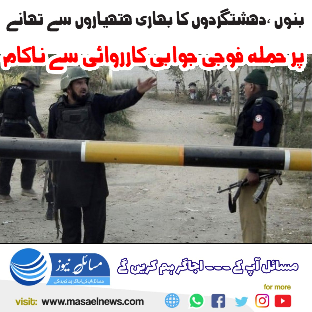 بنوں (مسائل نیوز)دہشتگردوں کا تھانے پر بڑا حملہ پولیس کی بہادری سے ناکام بنا دیا گیا۔