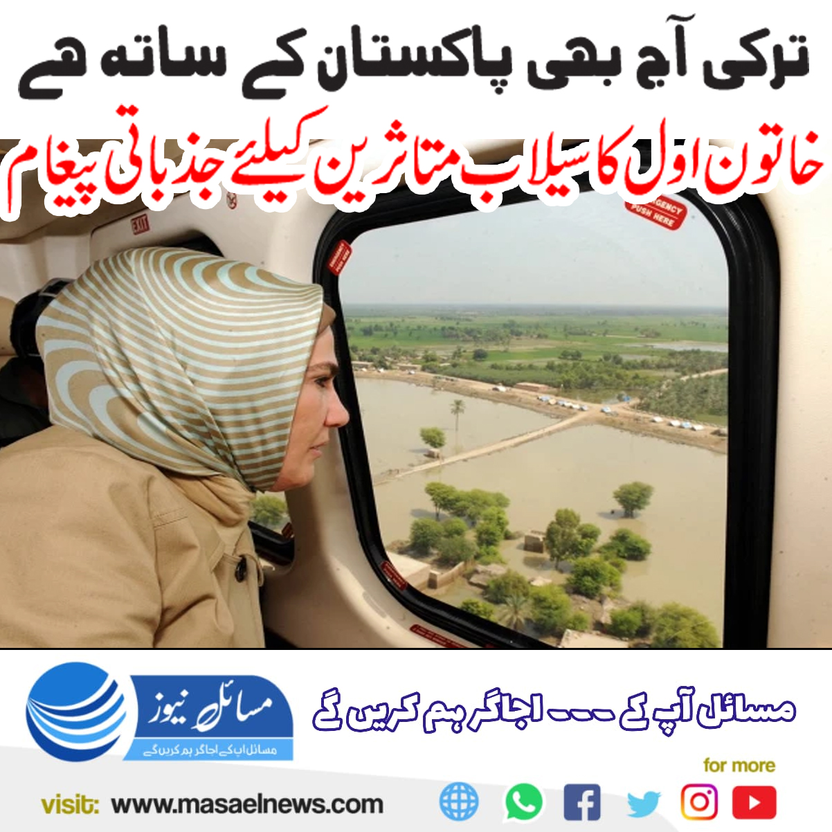 اسلام آباد(مسائل نیوز)ترک خاتون اول امینہ اِردوان نے پاکستان کی سیلابی صورت حال پر اپنا جذباتی پیغام سوشل میڈیا کے ذریعے دیا ہے۔
