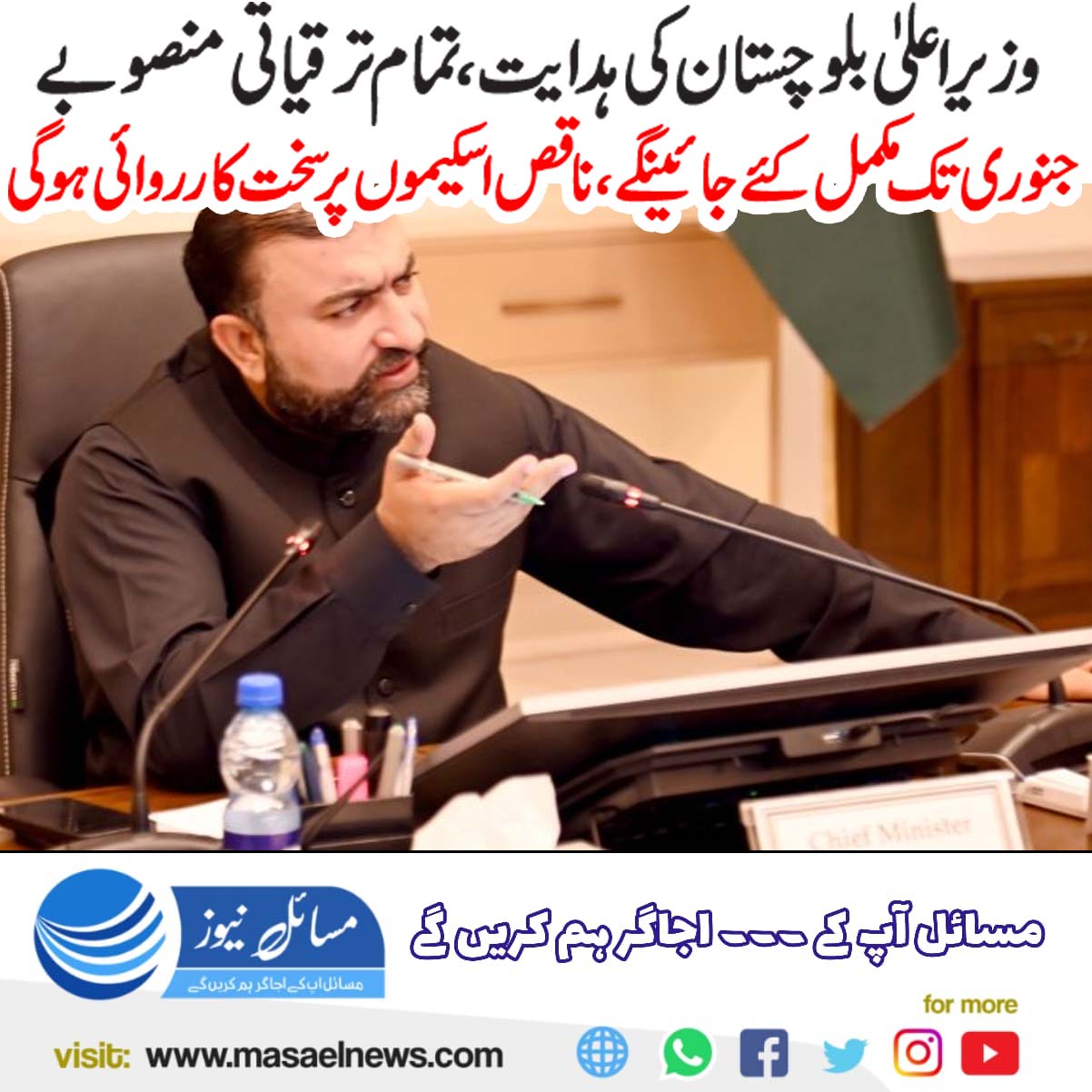 وزیر اعلیٰ بلوچستان کی ہدایت: تمام ترقیاتی منصوبے جنوری تک مکمل کیے جائیں، ناقص اسکیموں پر سخت کارروائی ہوگی