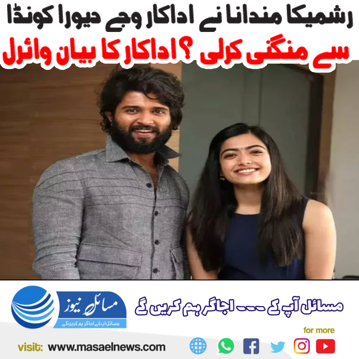 رشمیکا مندانا نے اداکار وجے دیوراکونڈا سے منگنی کرلی؟ اداکارہ کا بیان وائرل