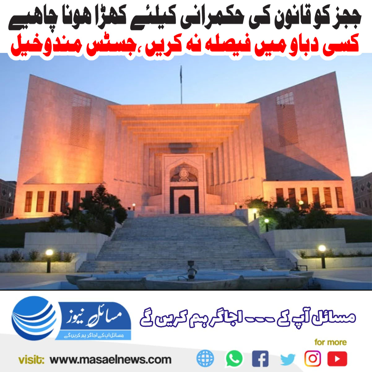 اسلام آباد(مسائل نیوز)سپریم کورٹ کے جج جسٹس جمال مندوخیل نے فیڈرل جوڈیشل اکیڈمی میں تقریب سے خطاب کرتے ہوئے کہا ہے کہ ججز کو قانون کی حکمرانی کیلیے کھڑے ہونا چاہئے۔