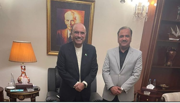 صوبائی وزیر زراعت و پاکستان پیپلز پارٹی کے سینئر مرکزی رہنما میر علی حسن زہری کے ہمراہ ایڈووکیٹ سلیم لاشاری کی صدر زرداری کے ساتھ ملاقات ،