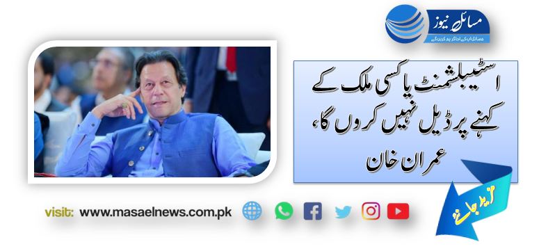 راولپنڈی (ویب ڈیسک)بانی پی ٹی آئی عمران خان نے کہا ہے کہ اسٹیبلشمنٹ یا کسی ملک کے کہنے پر ڈیل نہیں کروں گا۔