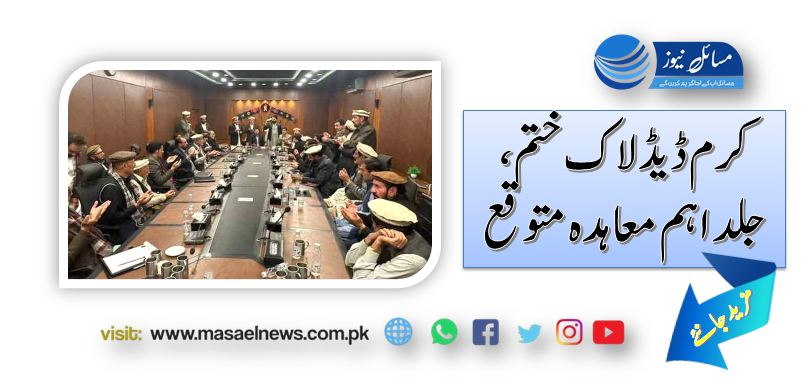 یاد رہے کہ پشاور تا پاراچنار مرکزی شاہراہ ڈھائی ماہ سے زائد عرصہ سے بند ہے۔ پاراچنار سمیت اپر کرم کے کئی دیہات کے لوگوں کو خوراک اور ادویات لینے میں مشکلات کا سامنا کرنا پڑ رہا ہے۔ جب کہ مرکزی سڑک کی بندش کے خلاف پاراچنار پریس کلب سمیت شہر کے 5دیگر مقامات پر متاثرین کا دھرنا جاری ہے۔جرگہ ذرائع کے مطابق کرم امن معاہدے میں ڈیڈ لاک ختم ہونے کا امکان ہے اور امن معاہدے کے مسودے پر دستخط کے لیے عمائدین کو راضی کر لیا گیا ہے۔