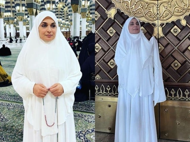 میرا نے انسٹاگرام پر مکہ مکرمہ اور مدینہ منورہ سے اپنی تصاویر شیئر کرتے ہوئے عمرے کی ادائیگی پر خدا کا شکر ادا کیا۔