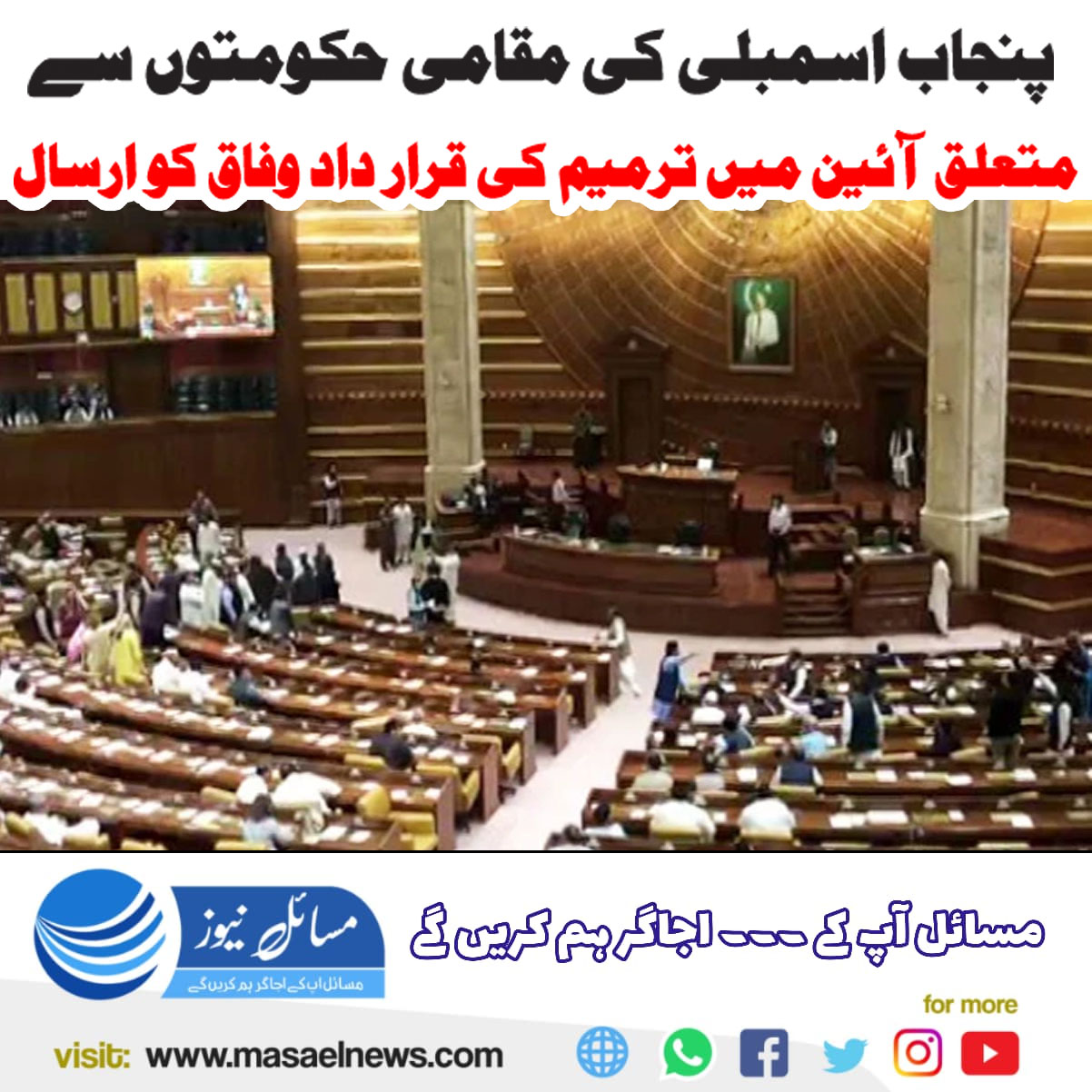 لاہور(مسائل نیوز)پنجاب اسمبلی نے مقامی حکومتوں سے متعلق آئین میں ترمیم کی قرارداد وفاق کو ارسال کردی۔